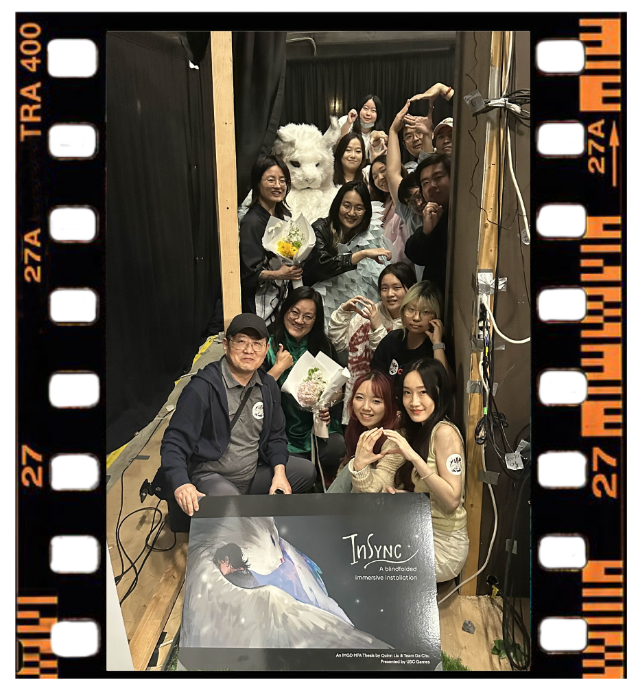 InSync is an immersive physical installation where players, blindfolded and vulnerable, explore a mysterious cave ecosystem to meet a creature named "Omu."